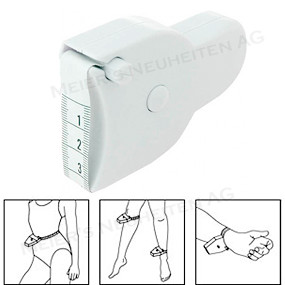 Bemerkungen: Ein Spezialbandmass für Körperumfangmessungen. Mit dem doppelseitig bedruckten Maßband können alle Körperumfänge wie Kopf, Handgelenk, Taille, Waden usw. gemessen werden. Muskelveränderungen durch Fitnesstraining, rheumatische Schwellungen usw. werden mit Hilfe dieses Bandmasses dokumentiert.