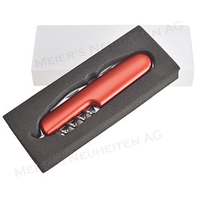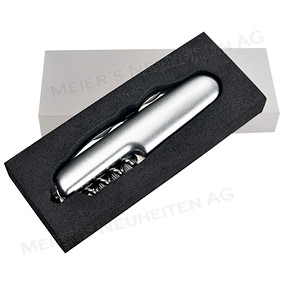 Multifunktionelles Taschenmesser mit vielen klassischen Tools. Neben Messer und Schere finden sich so nützliche Dinge wie Zapfenzieher und Flaschenöffner.