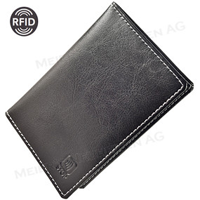 Ob Kreditkarten, Personalausweise oder biometrischer Pass: RFID-Chips (Radio Frequency Identification) stecken heute in den meisten Karten und Ausweisen. Dieses Etui ist mit einem speziellen Futter ausgerüstet, das den RFID-Chip vor unberechtigtem Scannen schützt.