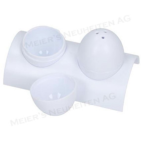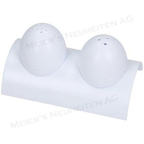 Bemerkungen: Set aus Salz- und Pfefferstreuer mit Halterung aus Kunststoff. Die Streuer verfügen über unterschiedlich grosse Löcher, um ein einfaches und kontrolliertes Streuen von Salz und Pfeffer (ohne Gewürze) zu ermöglichen. Die beiden Teile werden mittels Bajonettverschluss verbunden.