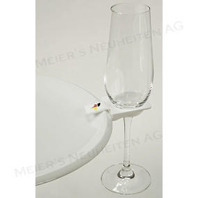 Beschreibung: Party-Clip hält Glas und Teller in einer Hand z.B. bei einer Stehparty