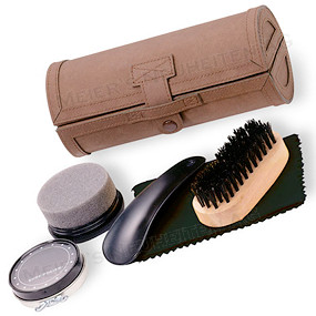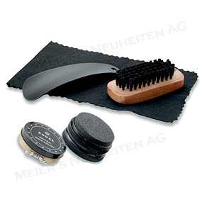 Inhalt: 1 Stk. Bürsten, 1 Stk. Schuhcreme (farblos) , 1 Stk. Schwamm 1 Stk. Schuhlöffel und 1 Stk. Poliertuch.