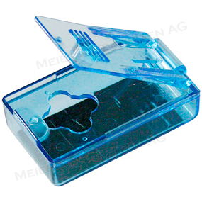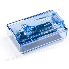 Mit diesem Entblisterer können Tabletten ohne Mühe aus der Verpackung gedrückt werden. Die Tablette wird mit der Verpackung über der Öffnung der Behälters plaziert. Durch drücken des Deckels wir die Tablette aus der Verpackung gestanzt und fällt in den Behälter. Nach dem Öffnen des Deckels kann die Tablette entnommen werden.